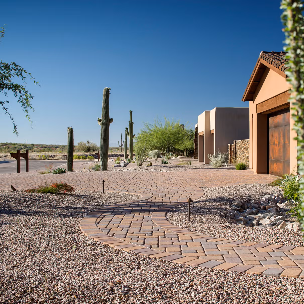Patios and walkways create natural extensions of your home, guiding movement and shaping the outdoor experience. Choose from large-format porcelain, natural stone, or textured pavers to match your aesthetic. Features can include slip-resistant, sun-safe options designed for year-round comfort in Arizona’s climate.